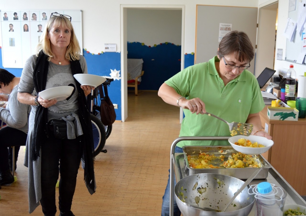 Also kommt die Unterstützung des Teams der Energie Steiermark im Rahmen des VZ Adventkalenders gerade recht. Indem heute die Ausstellungs- bzw. Verkaufsräume frisch gestrichen werden, ist ein großer Schritt dazu, dass es bald losgehen kann. Aber nicht nur Handwerkliches ist angesprochen an diesem Tag. Die Mitarbeiter des Energieversorgers bekommen auch ein Stück Einblick in den Alltag hier in der Tagesstätte. „Es rührt mich, wie liebevoll und fürsorglich die Betreuer das mache. Meinen allerhöchsten Respekt. Da können wir uns ein Stückchen abschneiden für unseren Umgang mit den Kunden“, sagt Farkhondeh Ilkhani, die in der Service GmbH der Energie Steiermark arbeitet. Und Petra Tatzel ergänzt: „Stimmt, vom Umgang untereinander können wir uns alle etwas abschauen“.