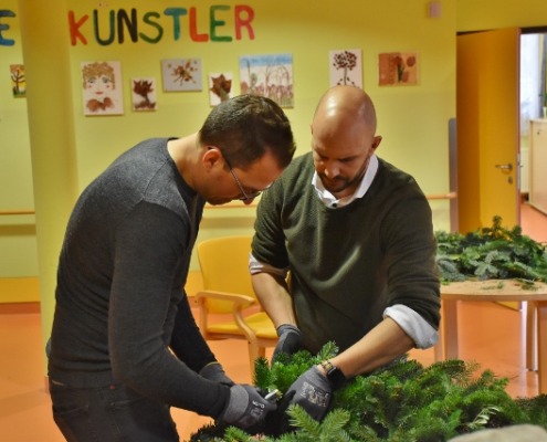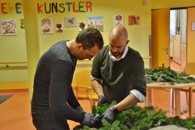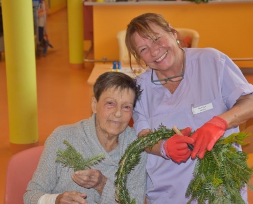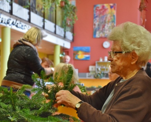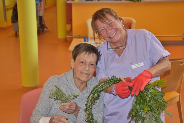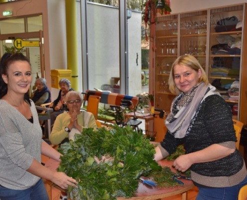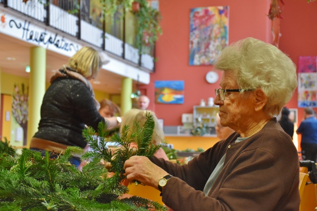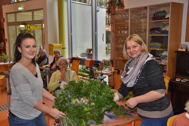 Ein Team aus Außendienstmitarbeiterinnen und -mitarbeitern hat nun im Rahmen des VZ Adventkalenders einen Tag im Pflegewohnhaus Fernitz der Caritas Steiermark verbracht. Das gemeinsame Binden großer und kleiner Adventkränze fürs Haus stand am Programm, zudem wurden Lichterketten montiert, weil es langsam Weihnachten wird. Wichtiger aber war es einander zuzuhören, miteinander zu plaudern und so auch ein wenig Einblick in den jeweils anderen Alltag zu bekommen.