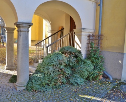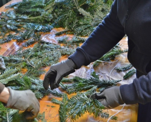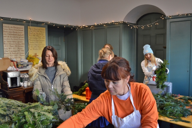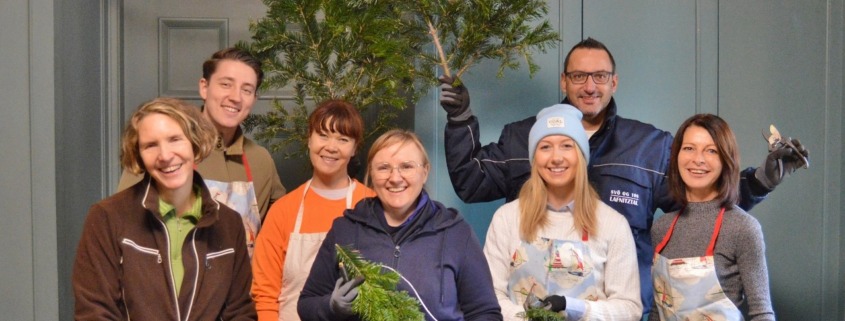 Alljährlich gibt es viel zu tun bei den Vorbereitungen für den traditionellen Adventmarkt „Tannenduft & Engelshaar“ in der Evangelischen Kreuzkirche in Graz-Lend. Es werden unter anderem viele Meter Tannengirlanden gebunden, um den Kirchenraum, die Säulen und den Eingangsbereich festlich zu schmücken. Ein Team von BILLA Steiermark hat sich im Rahmen der Mitwirkung am Verantwortung zeigen! Adventkalender freiwillig gemeldet, um in der Sakristei unter der Anleitung von Christie Pfau vom Team der Kreuzkirche zu helfen. Denn gerade in dieser Zeit sind viele helfende Hände jedes Jahr dringend gebraucht.