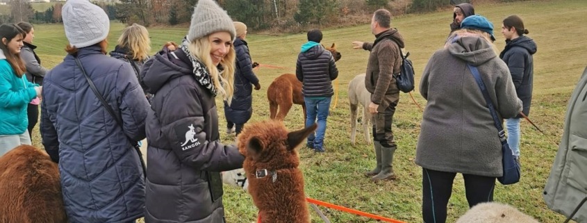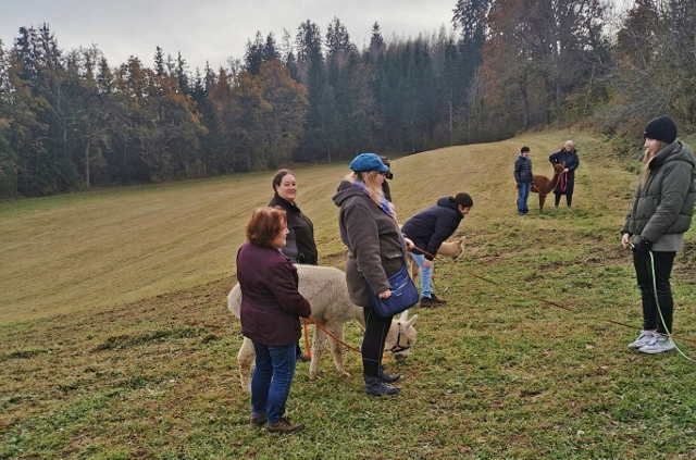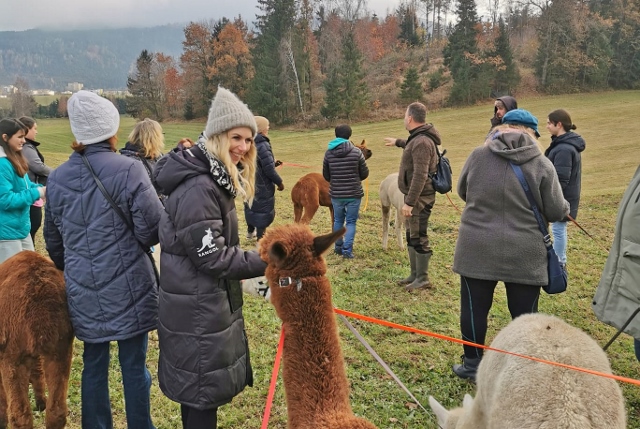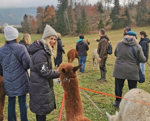 „Ich habe mich so darauf gefreut“, war der einstimmige Tenor, als sich ein Team von EY Ernst & Young gemeinsam mit KlientInnen des Sozialpsychiatrischen Tageszentrums Villach von pro mente für ein Alpkawanderung in der Nähe von St. Veit getroffen haben. Kaum angekommen, haben diese exotischen Wesen sofort die Herzen aller erobert und es wurde mit großem Interesse der Einführung und der Erklärung zugehört, bevor alle startklar für die Wanderung waren.