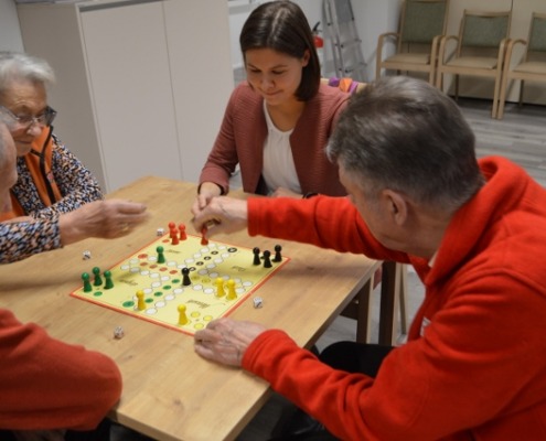 Am Nebentisch wird eine heißumkämpfte Partie „Mensch ärgere Dich nicht“ gespielt. Die Stimmung ist ausgelassen und unbekümmert und das freut besonders den Leiter der Tagesstätte Andreas Dreschl. „Wir sagen herzlich danke für diese Möglichkeit und diesen schönen Besuch“, meint er und betont, wie wichtig diese Aufmerksamkeit ist und freut sich schon auf das nächste Mal, wenn wieder ein engagiertes Team im Rahmen von Verantwortung zeigen! zu Gast in dieser netten Runde ist.