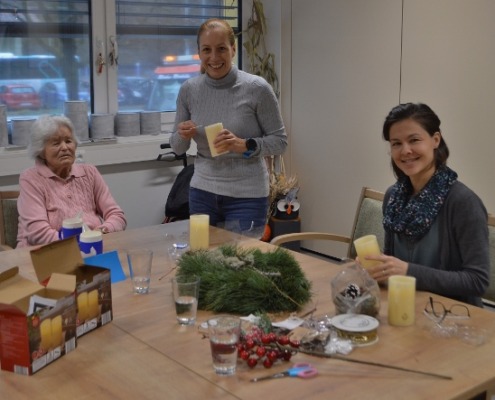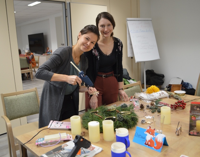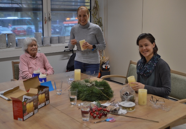 „Das macht gar nichts, sie schmecken so oder so gut“, lacht Katrin, die gemeinsam mit drei ihrer Kolleginnen der FH Kärnten heute zu Gast im Tageszentrum für SeniorInnen des Hilfswerk Kärnten in Feldkirchen zu Gast und den älteren Herrschaften beim Kekse backen und basteln zur Hand gehen. Es geht aber natürlich auch um die Unterhaltung und darum, die Routine des Tages an diesem VZ Adventkalendertag ein bisschen aufzulockern.