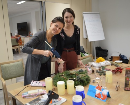 Dazu hat das Team eine besonders nette Idee mitgebracht. Claudia und Katrin spielen schon seit der Volksschule Flöte und tragen mit Freude ein paar Weihnachtslieder vor, die alle kennen und spontan zum Mitsingen einladen. Dazu braucht es kein langes Bitten. Gemeinsam wird musiziert und gesungen, „Alle Jahre wieder“, wobei sich die KlientInnen als besonders Textsicher erweisen und zum Schluss viel verdienten Applaus ernten.