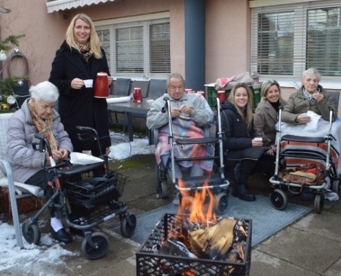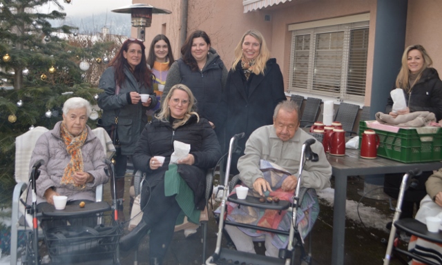 Ein knisterndes Feuer, Weihnachtsmusik, nette Gesellschaft und in der Hand ein Stanitzl mit heißen Maroni. So fanden sich Karoline, Daniela und Natalie vom Kärntner Siedlungswerk gemeinsam mit den BewohnerInnen des Pflegewohnheims Haus Theresia der Caritas in Feldkirchen an einem schönen, aber kalten Nachmittag auf der Terrasse zusammen ein, um den Advent zu begrüßen.