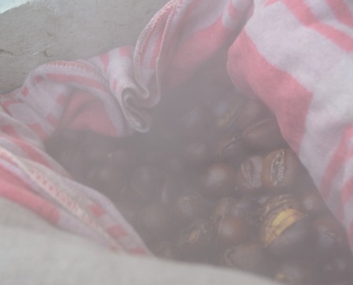 Und tatsächlich die Stimmung ist besinnlich und voller Freude über die Abwechslung und auf den Advent. Es wird geplaudert und gescherzt. Einigen BewohnerInnen ist es im Freien aber zu kalt und sie bleiben lieber drinnen in der warmen Stube. „Das macht gar nix“, meint Karoline, Vertriebsleiterin beim Siedlungswerk und beginnt, kleine Tüten mit den kleinen warmen „Alleskönnern“ zu füllen, um auch den Drinnengebliebenen eine Freude zu machen. „Kumm glei her, mei Grauperle“, wird sie fröhlich von einem Bewohner empfangen, der sie auch gleich einlädt, sich zu ihm zu setzen und ein kleines Schwätzchen zu halten. Und so vergehen schöne Stunden mit Maroni und Punsch wie ihm Flug.