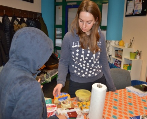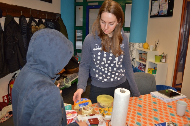 So kam das Firmenteam mit einer Präsentation, mit einem Film zur Produktion der Berglandmilch und Materialien, in denen die Herkunft und Verarbeitung von Milch und Käse ebenso beschrieben waren wie Berufsbilder, die es im Umfeld einer Molkerei zu erlernen gilt. Und dann konnten die Produkte ausreichend verkostet werden – vom Camembert bis zum Österkron war vieles im Gepäck und der einen oder andere Jugendliche schlug ordentlich zu. „Manchmal kommen die jungen Menschen, die wir betreuen, mit großem Hunger zu uns“, erzählen die beiden Sozialpädagogen Christoph Barthol und Mary Mischitz. „Wir haben auch jeden Morgen von 06:30 bis 07:30 Uhr geöffnet und die Kinder kommen vor der Schule, wir kochen gemeinsam Kakao. Morgen früh gibt es dann den Käse, den ihr mitgebracht habt, sofern er heute nicht mehr verspeist wird.