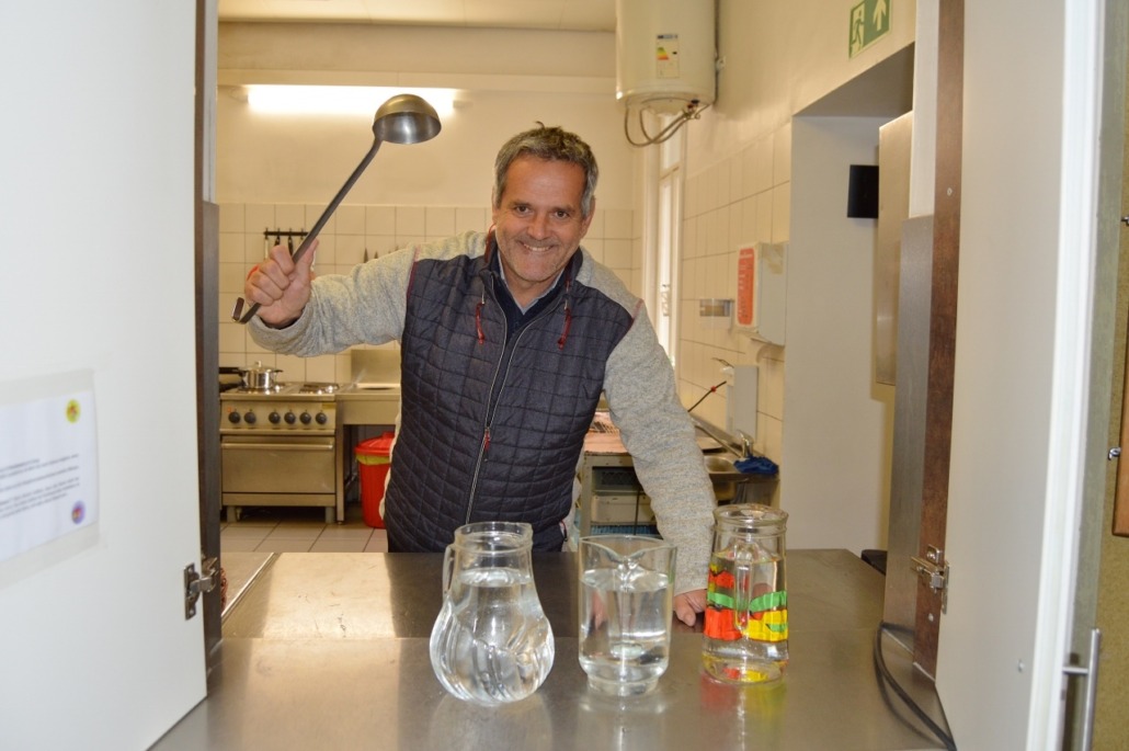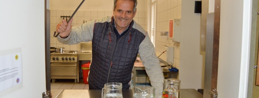 Auch Tiefenbachers Schwester Hannah Widnig, Geschäftsführerin der Hotels und Ressorts am Faakersee, ist mit von der Partie und schenkt gerade allen Gästen Tee ein, bevor das Essen serviert wird. Vorbereitet sind eine Kürbiscremesuppe, Rindfleischbraten mit Rotkraut und Semmelknödeln und zum Nachtisch gibt es einen Schoko-Preiselbeerkuchen. Der Hoteldirektor der Hotels Schönleitn und Seeleitn, Gerhard Hiesel, hat bereits den Schöpflöffel zum Servieren in der Hand und Kristina Ohidy, die in der Reservierungszentrale arbeitet, macht sich zum Servieren bereit.