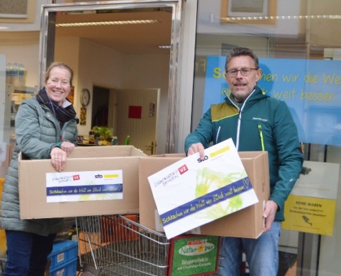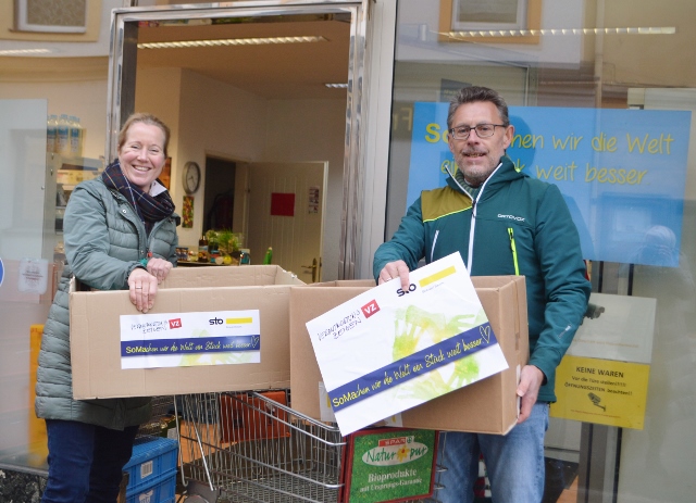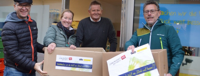 „Wir wollten heuer mit der Auswahl unseres Verantwortung zeigen! Engagements einfach allen Kolleginnen und Kollegen die Möglichkeit geben, mitzuwirken“, erzählt Johann Rauter von Sto Österreich über das Zustandekommen des Projektes im Rahmen des VZ Adventkalenders, als er gemeinsam mit seinem Kollegen Marius große Kisten voll mit haltbaren Lebensmitteln, Hygieneartikeln und anderen Dingen des täglichen Bedarfs in den Sozialmarkt Villach schleppt.