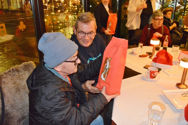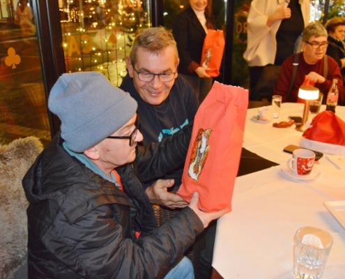 Zum Dank für die alljährlich besondere Einladung hat die Gruppe der Meierei ein Geschenk mitgebracht. Doris hat aus Ton eine wunderschöne Kugel gestaltet und diese weiß-blau glasiert. Von innen leuchtend ist sie ein wunderbares Zeichen für das Wichtige. „Die kommt bei uns ins Besprechungszimmer“, freut sich Marion Roseneder. Und dann gibt es noch Nikolosackerln, die das Casinoteam für seine Gäste vorbereitet hat; prall gefüllt mit guten und süßen Dingen.