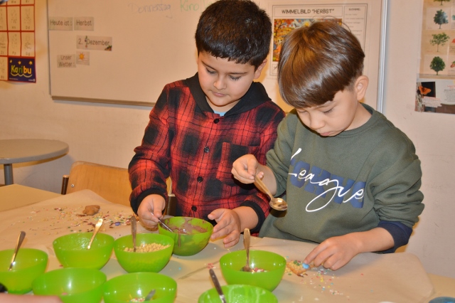 Cornelius Hübner hat seitens des CAMPUS 02 das Projekt koordiniert. Er ist üblicherweise für die Bereiche Hochschuldidaktik und Nachhaltigkeit zuständig, heute freut er sich für seine Kolleginnen und sich selbst, einmal ein anderes Arbeitsumfeld zu schaffen. „Ich freue mich sehr, mit den Kindern zu arbeiten, sie sind so bemüht und eifrig. Und schließlich gehört das Keksebacken im Advent in Österreich ja einfach dazu“, erzählt seine Kollegin Eva Karner vom FH-Marketing. Und weil die Mädchen und Buben fast alle aus Kulturkreisen kommen, wo es keine bunten Kekse zu dieser Jahreszeit gibt, gefällt es allen gleich noch viel mehr.