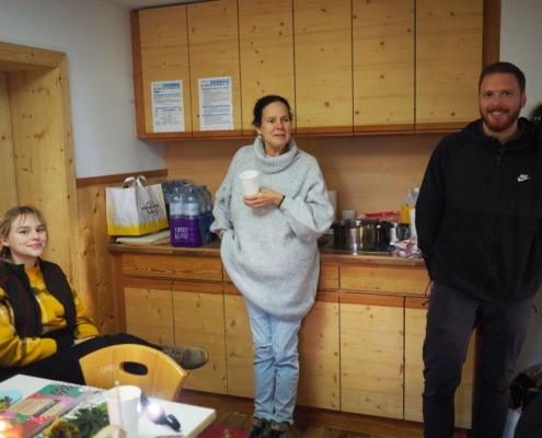 „Wir möchten den Kindern vor allem eine stimmungsvolle Zeit abseits des Alltags und Trubels schenken“, so Christine Pichler vom IARA. Am Feuer, das vor dem Haus flackerte, nahm sie die Kinder mit auf eine Reise durch das Leben des hl. Nikolaus. Die Geschichten waren der Anstoß für die nächste Aktivität – in Kleingruppen suchten wir im Wald, oft querfeldein, nach Naturmaterialien, um uns dann mit vollgefüllten Taschen an Blättern, Moos, Flechten u.ä. wieder in der Hütte zu versammeln.