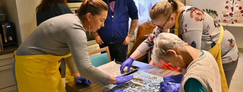 Dabei gab es viele Möglichkeiten in den Austausch über die Situation der Bewohner:innen zu kommen und gemeinsam nebenbei viele leckere Kekse zu backen. Ebenfalls spannend war der Austausch zwischen den helfenden Händen des Hilfswerks und den Betreuer:innen der Lebenshilfe – eine seltene Möglichkeit trägerübergreifend in den Austausch und die Vernetzung zu kommen.