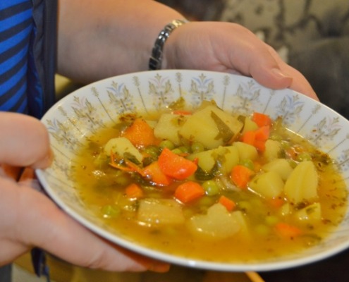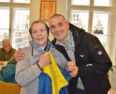 Dann geht es zur Essensausgabe, die wie jeden Tag mit einem Gebet, das der Leiter des Marienstüberl Adam Lamprecht und Schwester Elisabeth sprechen, beginnt. Klares Ergebnis dieses Tages: Es hat geschmeckt – und dem Team Freude bereitet!