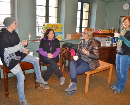 „Wenn der Turm zu leben beginnt, ist das alljährlich ein Zeichen, dass der Advent beginnt“, lacht Manfred. Er ist ehrenamtlicher Mitarbeiter in der evangelischen Kreuzkirche in Graz Lend. Um ihn stehen vier Kolleginnen und Kollegen der KNAPP AG aus den Bereichen Konstruktion, Simulation und Vertrieb. Sie sind an diesem Tag hierher gekommen, um im Rahmen des VZ Adventkalenders ihre Tatkraft und Zeit in den Dienst der guten Sache zu stellen und bei den Vorbereitungen für den diesjährigen Adventmarkt ‚Tannenduft & Engelshaar‘ anzupacken. „Jeder wird hier gebraucht und ich bin gerne dabei. Es macht Freude, mit den Kollegen aus der Firma zusammenzuarbeiten und es tut gut, Gutes zu tun“, freut sich Herr Nemec.
