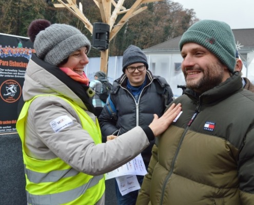 „Wenn unsere Firma es uns Mitarbeiterin schon ermöglicht, uns in der Arbeitszeit für solche schönen sozialen Projekte persönlich einzusetzen, dann muss man das einfach in Anspruch nehmen. Es ist so eine tolle Erfahrung einmal mehr. Ich freue mich, dass ich dabei sein darf bei solchen Aktionen, die mit so viel Herzblut verwirklicht werden. Schön, dass ich einen Teil davon sein darf“, erzählt Sandra. Dann kommt wieder ein Teilnehmer und freut sich, eine Brezel zu bekommen.