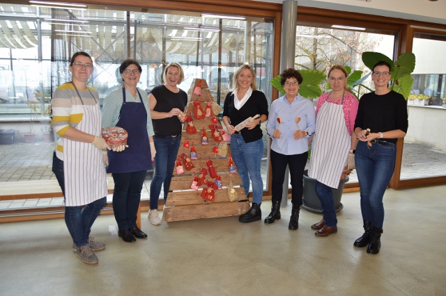 Verschiedene kleine Präsente aus Ton zu gestalten, ist eine der Aufgaben des Teams der Raiffeisenbank Eberndorf an diesem VZ Adventkalender-Tag hier in der Werkstätte Florian der Caritas Kärnten. Gemeinsame mit den Menschen mit Behinderungen, die hier betreut werden, sitzen Cornelia Mak und ihre Kolleginnen Kathrin Elbe und Martina Tomasch um den Werktisch und rollen den Ton aus. Auch Anni Wriesnig, sie ist Aufsichtsratsvorsitzende der Bank, ist mit dabei. „Wir sind ja seit dem Sommer Partner von Verantwortung zeigen! und schon beim ersten Mal hat uns diese Form des  unmittelbaren und konkreten Engagements für die Gesellschaft so gut gefallen, dass wir natürlich wieder teilnehmen – und natürlich wieder in unserer Region“, so Mak. Und Wriesnig unterstreichet: „Seit Jahren beobachte ich schon die Aktivitäten von VZ, jetzt sind wir mit großer Freude dabei und werden weiterhin sehr von der Zusammenarbeit profitieren, da bin ich sicher.“