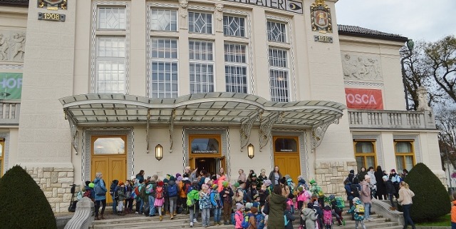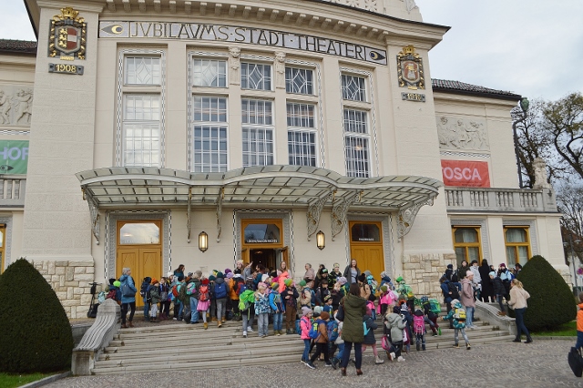 Momo, das Mädchen das gut zuhören kann, lockte zu zwei besonderen Vorstellungen ins Stadttheater Klagenfurt, denn die Aufführungen am 28.11. und am 5.12. wurden bzw. werden von den Kärntner Regionalmedien gesponsert. Jugendförderung kann auf vielen Ebenen passieren, Kunst ist dabei wohl eine der schönsten. Passend zum Advent bildete der Theaterausflug einen lustigen Ausgleich zum Lernen, sodass viele Schulklassen, Lerncafes, Kinderwohngemeinsachten oder auch Familien des SOS Kinderdorfs mit ihren Begleiter:innen das Haus auf allen Rängen füllten. Bevor es auf der Bühne losging, wuselten Hunderte von Kindern und Jugendlichen durch das Stadttheater Klagenfurt und bildeten mit ihren Rucksäcken und Schultaschen kleine Grüppchen in den stuckverzierten Hallen.