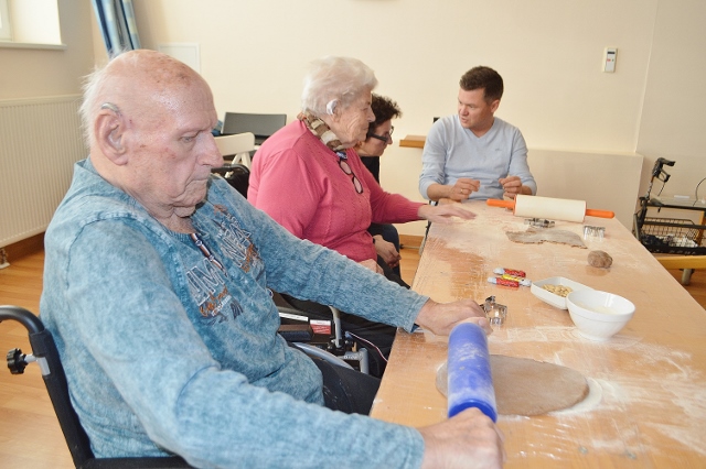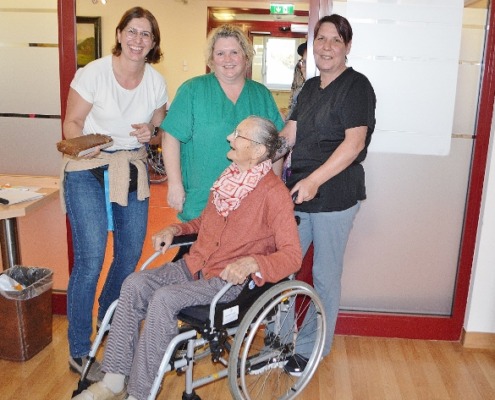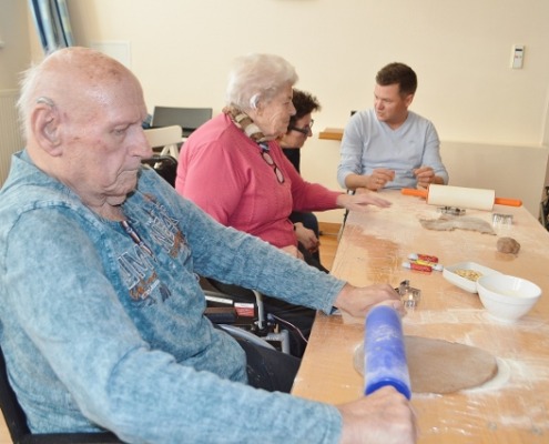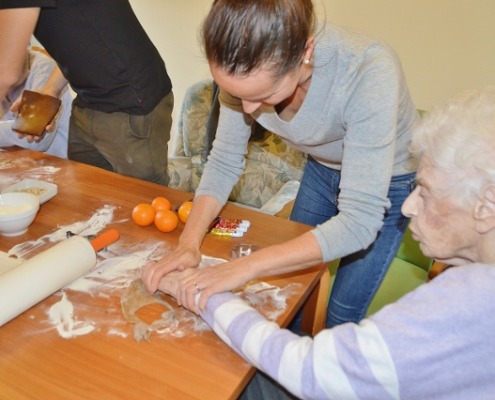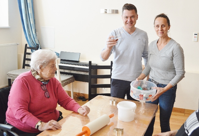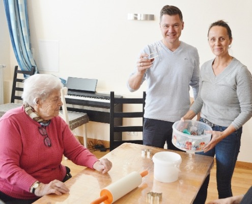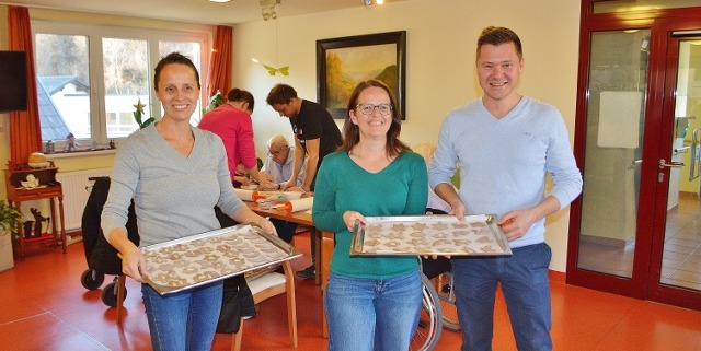 Während sie behutsam die Hand einer Bewohnerin auf den Keksstecher führte, ergänzte Anna Spitzer: „Eine gute Tat soll man ja jeden Tag tun und dieses Mal dachten wir uns, machen wir das mit den Mitarbeitern gemeinsam. Nehmen wir ein paar Stunden der Arbeitszeit und machen etwas ganz anderes.“