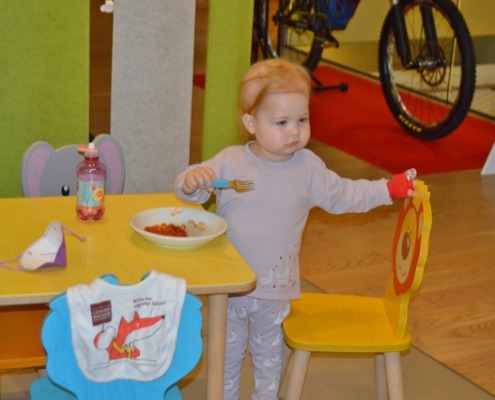 Aber davor gibt es einmal ein Erinnerungsfoto zu diesem süßen Arbeitstag mit der kleinen Pia und ihren Eltern, die derzeit wie viele andere Familien auch, im Haus zu Gast sein dürfen während ihrer Behandlung in der nahen Kinderonkologie. „Es ist wichtig, dass es das Haus gibt“, sind alle einig.