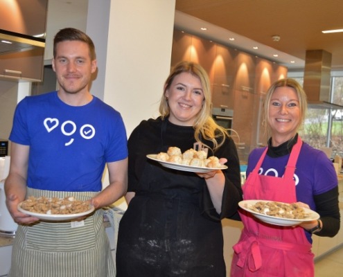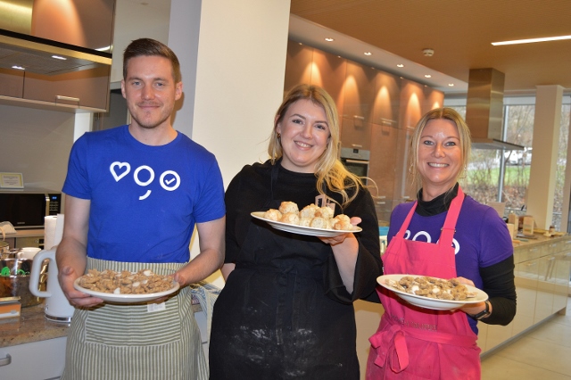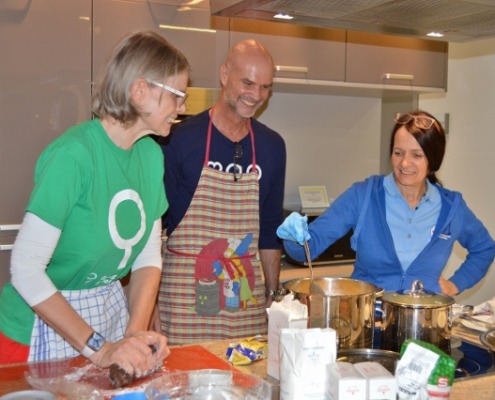 „Es macht uns richtig Freude, wieder hier zu sein im Ronald McDonalds Haus der Kinderhilfe in Graz“, erzählt die Leiterin des Center für freie Berufe der Steiermärkischen Sparkasse Claudia Repnik. Gemeinsam mit ihrem Team ist sie heute hier im Backeinsatz, damit dann Keksteller& Co. zugunsten der Kinderhilfe verkauft werden können; der Erlös fließt natürlich zurück ans Haus.