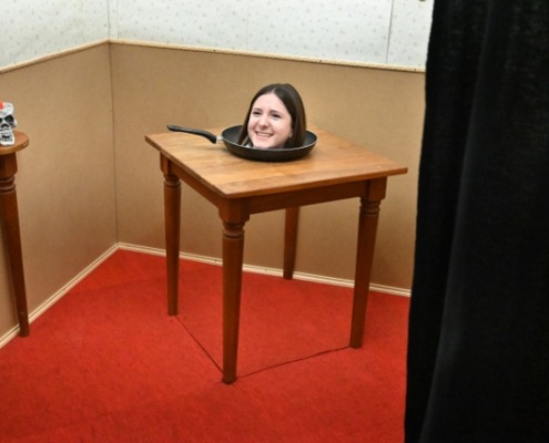 Weitere Highlights waren Kartentricks, die die Kinder zum Staunen brachten und die Neugier nach dem Trick dahinter anfeuerten. Lustige Fotos wurden vor einem verspiegelten Tisch gemacht, der den Eindruck erweckte, dass der Kopf einer Person in einer Bratpfanne liegen würde.