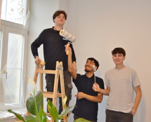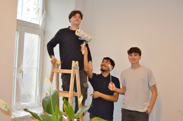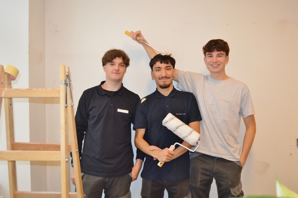 Eine echt anspruchsvolle Arbeitsmission hat ein Lehrlingsteam der STW Klagenfurt im Rahmen des VZ Adventkalenders übernommen und mehrere Räume der schulischen Nachmittagsbetreuung des Hilfswerk Kärnten in der Schule in Viktring neu ausgemalt. Begleitet wurden die sechs engagierten Lehrlinge, die aktuell im 3. und 4. Lehrjahr ihre Ausbildung im Bereich Elektrotechnik absolvieren, von den Ausbildern Alexander Stobl und Fabian Nematy sowie einem Malerprofi aus dem Unternehmen.