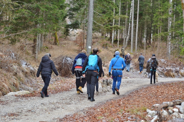 Nach einer kurzen Einführung und dem Kennenlernen der Huskys suchte sich schließlich jeder Hund seinen Wanderpartner aus. Ausgestattet mit Hüftgurt und Leine startete die Gruppe zur gemeinsamen Wanderung durch den Wald. Rund zwei Stunden waren die Teilnehmenden mit den lebhaften, freundlichen Hunden unterwegs – was für ein intensives Natur- und Gemeinschaftserlebnis!