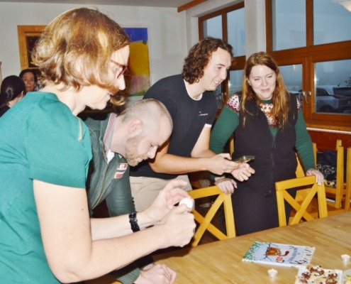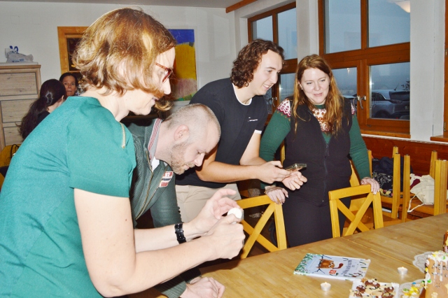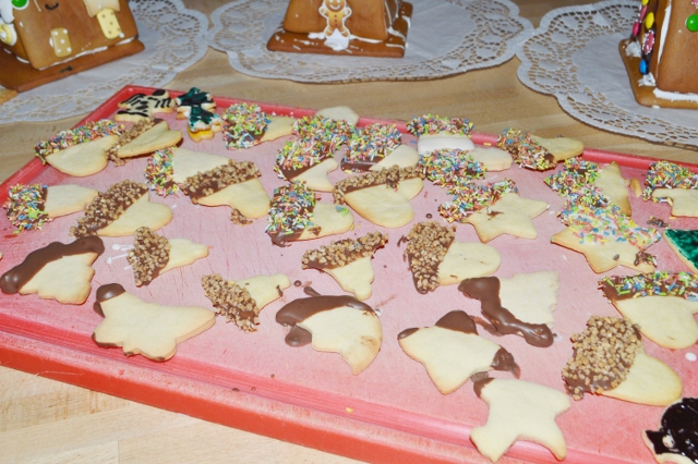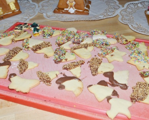 Auch Kekse werden eifrig gebacken, getunkt, verziert und selbstverständlich voller Genuss probiert. Einige verschwinden so schnell in neugierigen Bäuchlein, dass sie nicht einmal trocknen können. Mmmhhh … Kekse mit warmer Schokoladensoße! Und mit jedem süßen Bissen scheint die Geräuschkulisse fröhlicher und lebendiger zu werden.