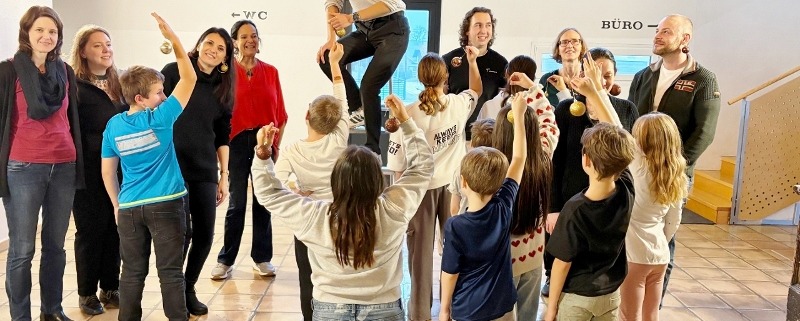 Hopsend und mit einem Weihnachtslied auf den Lippen kommt ein Mädchen freudestrahlend um die Ecke. Im Haus Herrnhilf der Diakonie de La Tour liegt Advent in der Luft. Man kann ihn spüren, hören und riechen. Neun Kolleg:innen des Alternsforschungszentrums IARA der Fachhochschule sind zu Besuch, um mit zehn Kindern eine besondere Zeit zu verbringen und den Zauber des Advents zu genießen. Gemeinsam erfüllen sie das Haus mit Lachen, warmen Düften und sprühender Kreativität.