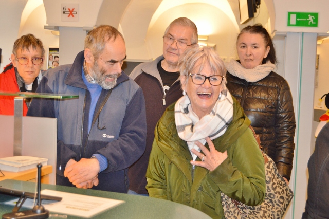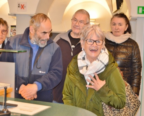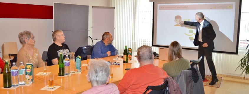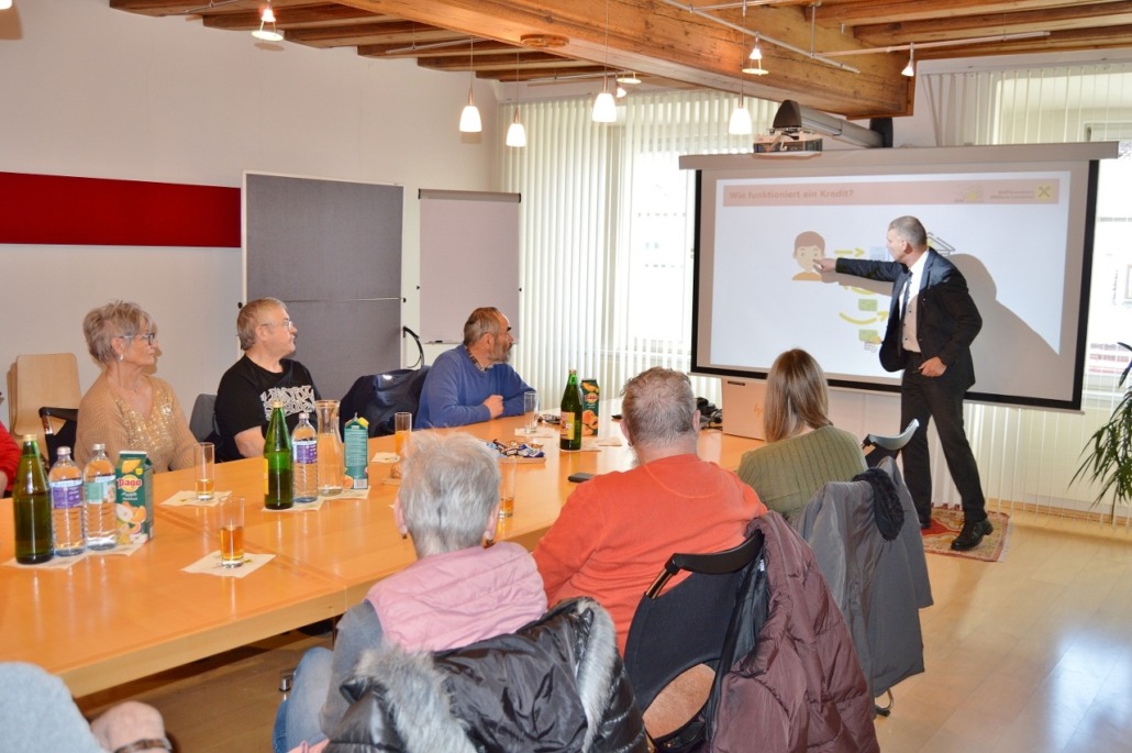 So bot der gemeinsame Tag für die betreuten Damen und Herren eine Exkursion zur Bank am Hohen Markt in Wolfsberg, bei der sie die Arbeitsabläufe und Aufgaben eines Finanzinstituts aus erster Hand kennenlernen konnten. Im Veranstaltungsraum im zweiten Stock gab es einen anschaulich gestalteten Vortrag vom Leiter Privatkundenbetreuung und Prokuristen Reinhold Weinländer zu Kontoführung, Krediten und persönlicher Finanzgebarung. Mit einem 20-Euro-Schein konnten die Teilnehmenden zudem selbst prüfen, woran man echtes Geld erkennt.