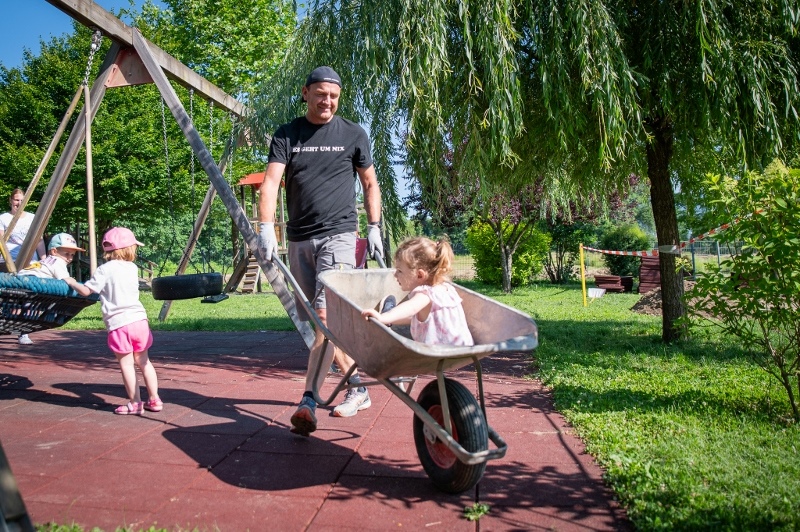 Auf die Plätze, fertig, los! – Im Garten des Alpe-Adria Kindergartens des Hilfswerk Kärnten auf der Schleppealm hat ein Team eine große Bobbycar-Bahn gebaut. Ein Großprojekt und eine tolle Baustelle war das für Groß und Klein 😊