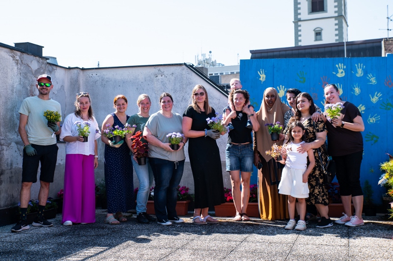 Grün ist es nie genug – dachte sich das Team des Projekts IDA der Diakonie de La Tour in Klagenfurt. Ein MitarbeiterInnenteam der Stadt hat gemeinsam mit den QuartiersbewohnerInnen, es sind Mütter und Kinder in belastenden Situationen und mit Migrationshintergrund, eine Kübel-Pflanz-Aktion umgesetzt und auf der etwas verkommenen Dachterrasse des Hauses – mitten in der Stadt – neue Sommerpflanzen eingesetzt, die das Stadtgartenamt zur Verfügung gestellt hatte.
