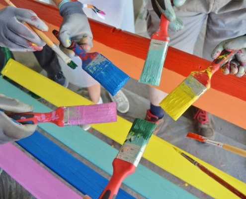 BKS Bank AG, Engagementtage, Gesellschaft, Hilfswerk KärntenMaria Saal, 7. Juni 2024. Bunt, bunter, Blumenwiese! Das von der Witterung gezeichnete Gartenhäuschen ist bei den Kindern der KITA Maria Saal ein beliebter Spiel- und Rückzugsort. Deshalb kam der Wunsch auf, dieses wieder aufzufrischen…