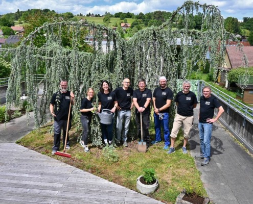 Caritas Steiermark, Engagementtage, Gesellschaft, KNAPP AGEggersdorf b. G., 27. Mai 2025. Herausgeputzte Terrasse Ein Firmenteam der KNAPP stellte sich der Aufgabe, die Terrasse des Pflegewohnheims Eggersdorf der Caritas mit neuen Pflanzen und Kräuter und Sträuchern zu verschönern, die Bretter…