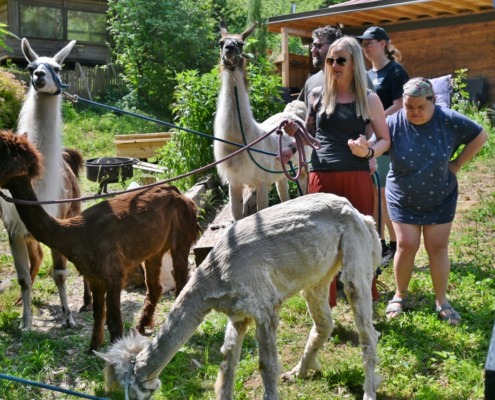 Engagementtage, Gesellschaft, KNAPP AG, Naturschutzjugend SteiermarkSeggauberg, 12. Juni 2025. Alpakawanderung und Besuch bei den Ziegen, Pferden und Ponys Die Teilnehmer:innen der Tagesförderstätte Voitsberg von LebenGroß machten gemeinsam mit einem Team der Firma KNAPP einen Ausflug auf den Seggauberg…