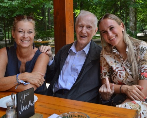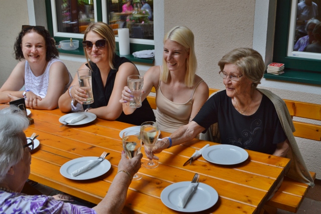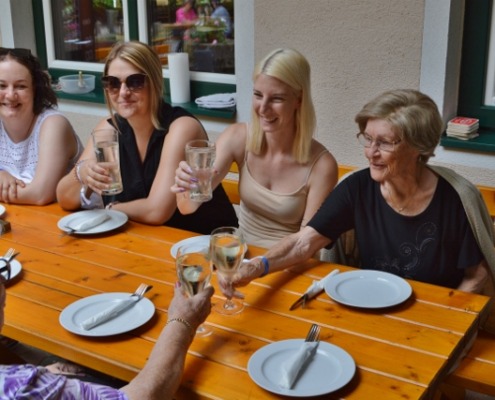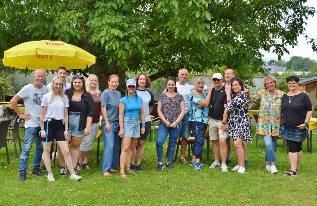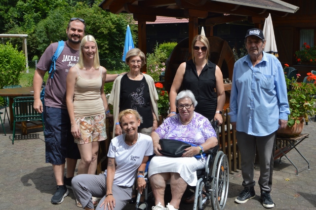 20.6.2024, Klagenfurt. Nach dem gemeinsamen Busfahrt und einem kleinen Spaziergang kam die Gruppe bestehend aus Mitarbeitenden des Landes Kärnten und den BewohnerInnen des Pflegewohnhauses Haus Martha der Caritas im Kalmusbad an der Sattnitz an. Das Kalmusbad ist vielen alten Menschen noch aus der Jugend in guter Erinnnerung. Im Schatten am Wasser machte es sich die Runde sofort gemütlich. Nach einer Stärkung mit Getränken wurde das Areal erkundet und die Damen und Herren genossen das anregende Miteinander.