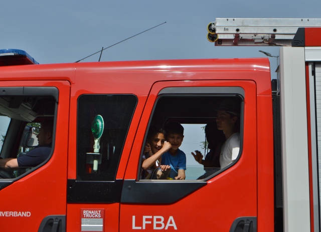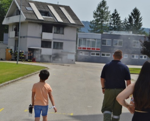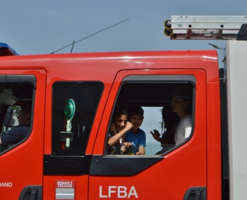 20.6.2024, Klagenfurt. Ein Team des Landesrechnungshofs erwartete freudig die Kinder des Lerncafe Don Bosco der Caritas am Areal der Landesfeuerwehrschule in Fischl. Nach einer Stärkung mit Käsesemmeln gab es eine Führung durch die vielen Gebäude. Die Kinder waren wirklich interessiert und neugierig bei der Sache, die Gerätschaften und die Räumlichkeiten machten mächtig Eindruck. Zum krönenden Abschluss durften sich alle Kinder in die Feuerwehrautos setzen und diese erkunden. Als Draufgabe bestand die Möglichkeit, eine Runde im Auto mitzufahren – Sirene und Blaulicht natürlich inklusive.