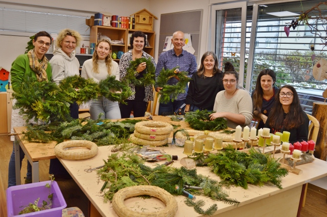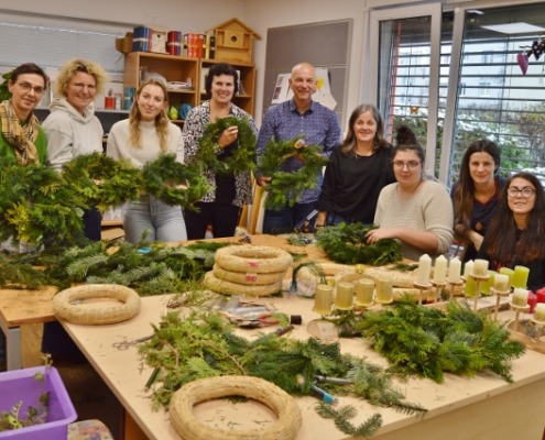 An diesem Tag wurde die Tagesstätte Saluto von pro mente kijufa in Villach zur Weihnachtswerkstätte. Ein achtköpfiges engagiertes Team von Kolleginnen und Kollegen des Magistrat Villach hat an diesem Adventkalendertag gemeinsam mit den Jugendlichen Adventkränze gebunden und Kekse gebacken. Vieles wurde geschafft, das können die Jugendlichen nun am Adventmarkt in Steuerberg verkaufen und so ein kleines Weihnachtsgeld bekommen. Es war ganz viel Kreativität und Spaß in den Räumen der Tagesstätte spürbar – und der Duft erst…