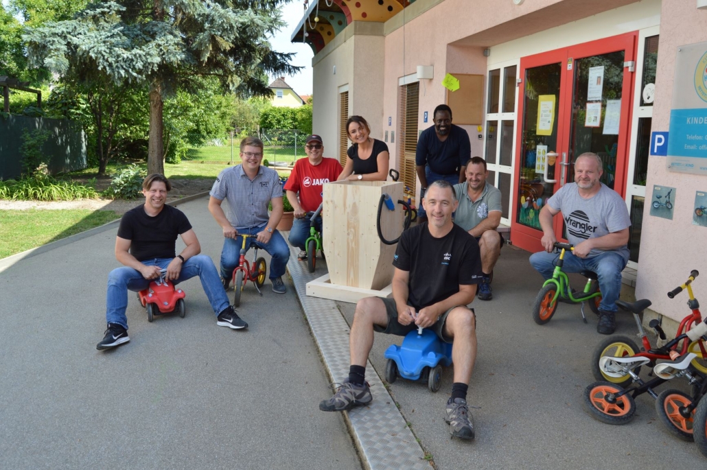 Ein Kinderhochbeet haben sich die Kleinen der Kindernest Kindergruppe Hokus Pokus in Wieting gewünscht. Und neue Schutzmatten um die Bobbycar-Garage und das Spielhaus. Kein Problem: Ein Team der Kelag hat diesen Wunsch gerne übernommen.