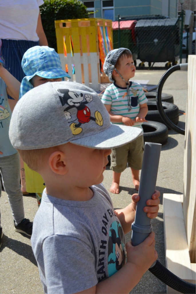 Das war wirklich gemeinsame erdige Arbeit des Teams der Wietersdorfer und der Kleinen in der Kindergruppe Drumherum der Kindernest. Der große Erdhügel wurde mit vereinten Kräften abgetragen und aus einem Teil der gelben Mauer wurde eine beschreibbare Tafel. Da haben alle, die mitgearbeitet haben, abends gut geschlafen.