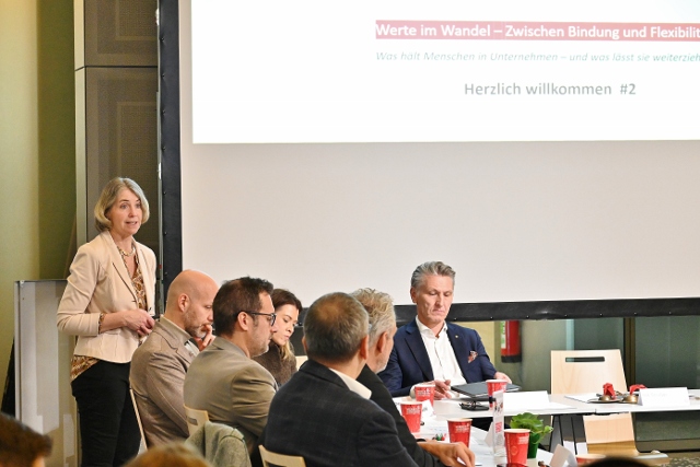 In der ersten Dialogrunde, in der die etablieren Führungskräfte mit sehr persönlichen Erfahrungen einstiegen, wurde deutlich: „Es hängt alles von den Führungskräften ab.“ Vertrauen und das Gefühl, gesehen zu werden, seien zentrale Faktoren, aber auch die Kultur zähle. Eine Führungskraft brachte es auf den Punkt: „Die Kultur des Unternehmens hat mich ausreichend über schlechte Führungskräfte drübergetragen.“