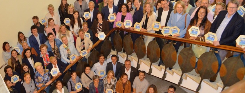 Full house und ein stimmungsvolles Fest zum Auftakt der VZ Engagementtage 2024 im Spiegelsaal der Kärntner Landesregierung. Vertreter:innen aus allen mitwirkenden Unternehmen waren ebenso dabei wie der Landesamtsdirektor des Landes Kärnten als Gastgeber und Diözesanbischof als Vertreter der Ökumene. Respektvolle Neugier auf Neues, auch Fremdes und gesellschaftlicher Zusammenhalt sind das gemeinsame Programm aller, die heuer an diesem österreichweit einzigartigen Landesweiten Corporate Volunteering Event im Süden Österreichs teilnehmen.