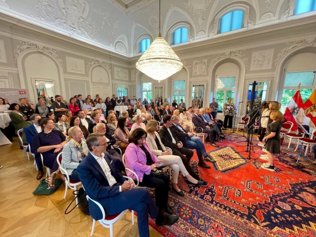 Full house und ein stimmungsvolles Fest zum Auftakt der VZ Engagementtage 2024 im Spiegelsaal der Kärntner Landesregierung. Vertreter:innen aus allen mitwirkenden Unternehmen waren ebenso dabei wie der Landesamtsdirektor des Landes Kärnten als Gastgeber und Diözesanbischof als Vertreter der Ökumene. Respektvolle Neugier auf Neues, auch Fremdes und gesellschaftlicher Zusammenhalt sind das gemeinsame Programm aller, die heuer an diesem österreichweit einzigartigen Landesweiten Corporate Volunteering Event im Süden Österreichs teilnehmen.