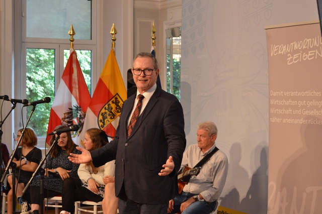 Bischof Josef Marketz hob in seiner Rede die Bedeutung des Wertes der Verantwortung hervor und betonte, dass jeder und jede an seiner Stelle aufgerufen ist, diese bewusst wahrzunehmen und im eigenen Einflussbereich umzusetzen. „Gemeinsam geht das natürlich leichter und so ist es großartig, dass das Verantwortung zeigen! Netzwerk seit bereits mehr als 15 Jahren sie alle darin verbindet, die Verantwortung für das Land konkret werden zu lassen.“