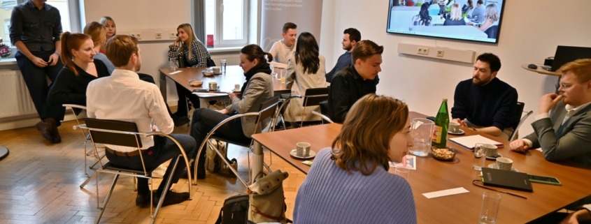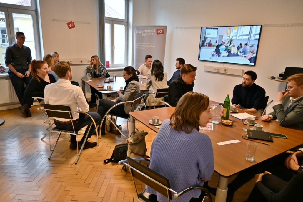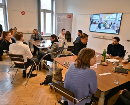 Neue Blickwinkel und Perspektiven kennenlernen, kombiniert mit fachlichem Austausch – das schafft das neue Format der VZ future minds^ bei seinen Netzwerktreffen, wie an diesem Donnerstagnachmittag unter der Leitung von Martin Straßer. So auch an diesem Donnerstag: Neue Gesichter gemischt mit Altbekannten – sie alle haben den Drang, Gutes zu tun und sich miteinander am Finden von Lösungswegen für aktuelle Herausforderungen zu beteiligen. Möglichkeiten, eigene Ideen zu diskutieren und gemeinsam umzusetzen, auch das prägt die „junge“ Riege.