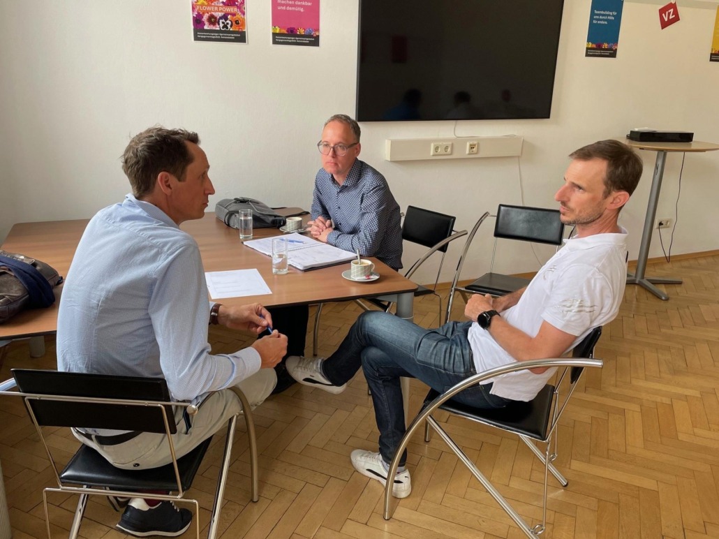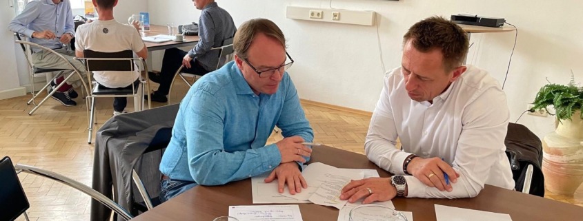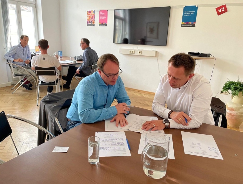 Zwei Führungskräfte haben am 14. April beim gemeinsamen Startworkshop im VZ Netzwerkbüro ihren Brückenschlag 2025 geplant und ihre ‚Einsatzbetreuer‘ für die Woche kennengelernt: