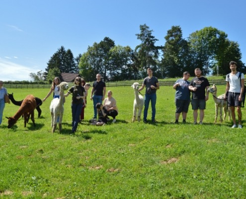 Die Steiermärkische Sparkasse hat in Kooperation mit der Karl-Franzens-Universität Graz, der Kunstuniversität Graz, der TU Graz und der Montanuniversität Leoben „Best of South-East“ – das Förderungs- und Weiterbildungsprogramm für talentierte und leistungsbereite Universitätsabsolventen und Studierende aus Slowenien, Kroatien, Bosnien und Herzegowina, Serbien, Montenegro und Nordmazedonien initiiert. Und eine Gruppe dieser engagierten AbsolventInnen hat heute einen VZ Engagementtag gemeinsam mit den am Rosenhain von LebensGroß betreuten Menschen mit Behinderung verbracht. Es ging miteinander auf die Laßnitzhöhe zur Alpakawanderung. Was für besondere Begegnungen und Eindrücke, die alle von diesem Tag mitgenommen haben, die dabei waren. Da wurden mehrere Grenzen übersprungen und haben Menschen einander Zeit geschenkt und Freude bereitet.