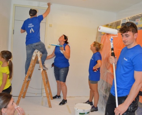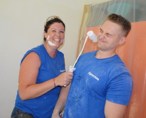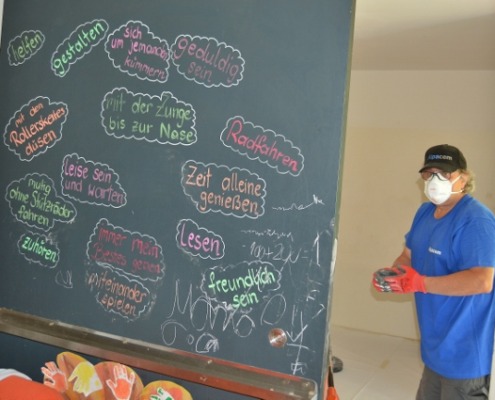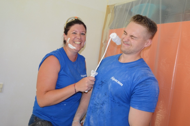 Heiß, weiß und unglaublich lustig war das! Neue Farbe für ein paar Räume war das Ziel, geworden ist es doch viel mehr… Das engagierte Firmenteam der Wietersdorfer Alpacem war im Rahmen ihres diesjährigen VZ Engagementtages Kinder in der Krisenwohngruppe Barbakus im SOS Kinderdorf Moosburg zu Gast. Gemeinsam mit den Kindern und SozialpädagogInnen im Haus haben sie die Wände in Spiele- und Wohnzimmer angeschliffen, ausgebessert und neu gestrichen, damit die Kids den Wohlfühleffekt von etwas Neuem und Frischem erleben können. Denn ein schönes Raumgefühl tut auch der Seele gut. Und so wurde es ein Tag mit ganz viel Abwechslung vom eigenen Alltag und viel Spaß und jeder Menge Farbe im Gesicht 😊
