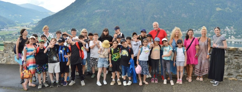 Hoch hinaus über die Stadt Villach auf die Burg Landskron ging es für die Mädchen und Buben, die im Lerncafe der Caritas Kärnten in Villach bei ihren Hausaufgaben und dem Bewältigen der Schule unterstützt und gefördert werden, im Rahmen des gemeinsamen VZ Engagementtages mit dem Team des ATRIO Villach. Rund um Geschäftsführer Richard Oswald lud das MitarbeiterInnenteam des bekannten Shoppingcenters die Kids nicht nur auf ein köstliches Mittagessen im Burgrestaurant ein, sondern dann ging es auf die Adlerarena. In einer Vorführung konnte die Runde die frei am Himmel fliegenden Greifvögel im Aufwind der berühmten Burg hier in der Mitte Kärntens erleben. Nach atemberaubenden Flügen kehrten die Vögel zum Falkner zurück. Auch über das Verhalten und Lebensgewohnheiten der zum Teil bedrohten Tiere konnten die Kinder und Erwachsenen viel erfahren. So war dieser Engagementtag beides: ein lustiger Ausflug und auch ein Tag, der Bildung ganz anschaulich vermittelt hat. Lernen muss ja nicht immer nur im Lerncafe stattfinden, oder?
