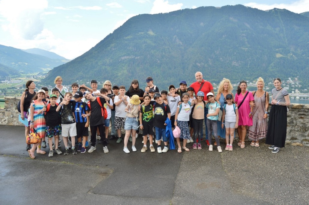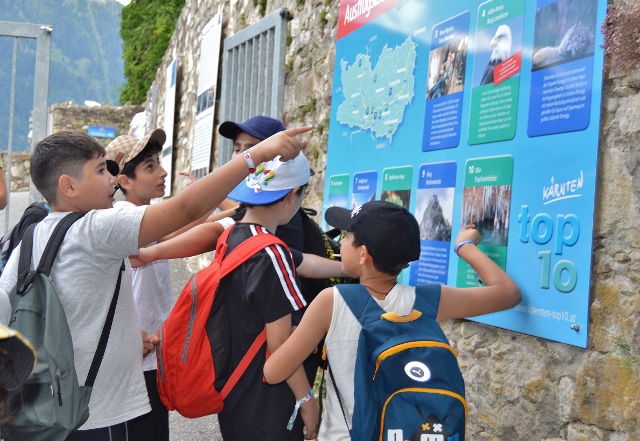 Hoch hinaus über die Stadt Villach auf die Burg Landskron ging es für die Mädchen und Buben, die im Lerncafe der Caritas Kärnten in Villach bei ihren Hausaufgaben und dem Bewältigen der Schule unterstützt und gefördert werden, im Rahmen des gemeinsamen VZ Engagementtages mit dem Team des ATRIO Villach. Rund um Geschäftsführer Richard Oswald lud das MitarbeiterInnenteam des bekannten Shoppingcenters die Kids nicht nur auf ein köstliches Mittagessen im Burgrestaurant ein, sondern dann ging es auf die Adlerarena. In einer Vorführung konnte die Runde die frei am Himmel fliegenden Greifvögel im Aufwind der berühmten Burg hier in der Mitte Kärntens erleben. Nach atemberaubenden Flügen kehrten die Vögel zum Falkner zurück. Auch über das Verhalten und Lebensgewohnheiten der zum Teil bedrohten Tiere konnten die Kinder und Erwachsenen viel erfahren. So war dieser Engagementtag beides: ein lustiger Ausflug und auch ein Tag, der Bildung ganz anschaulich vermittelt hat. Lernen muss ja nicht immer nur im Lerncafe stattfinden, oder?